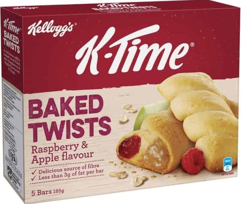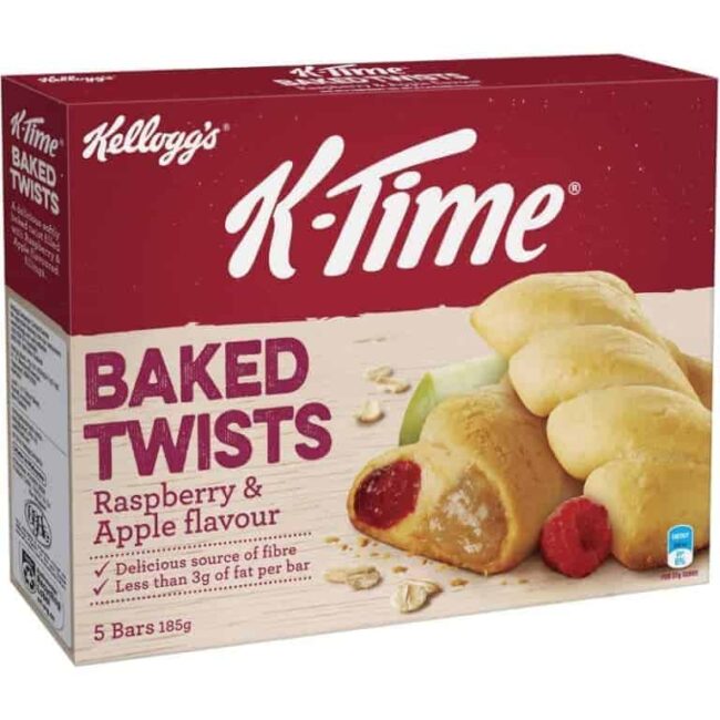 KELLOGG’S K-TIME BAKED TWISTS RASPBERRY AND APPLE FLAVOUR FILLED SNACK BARS